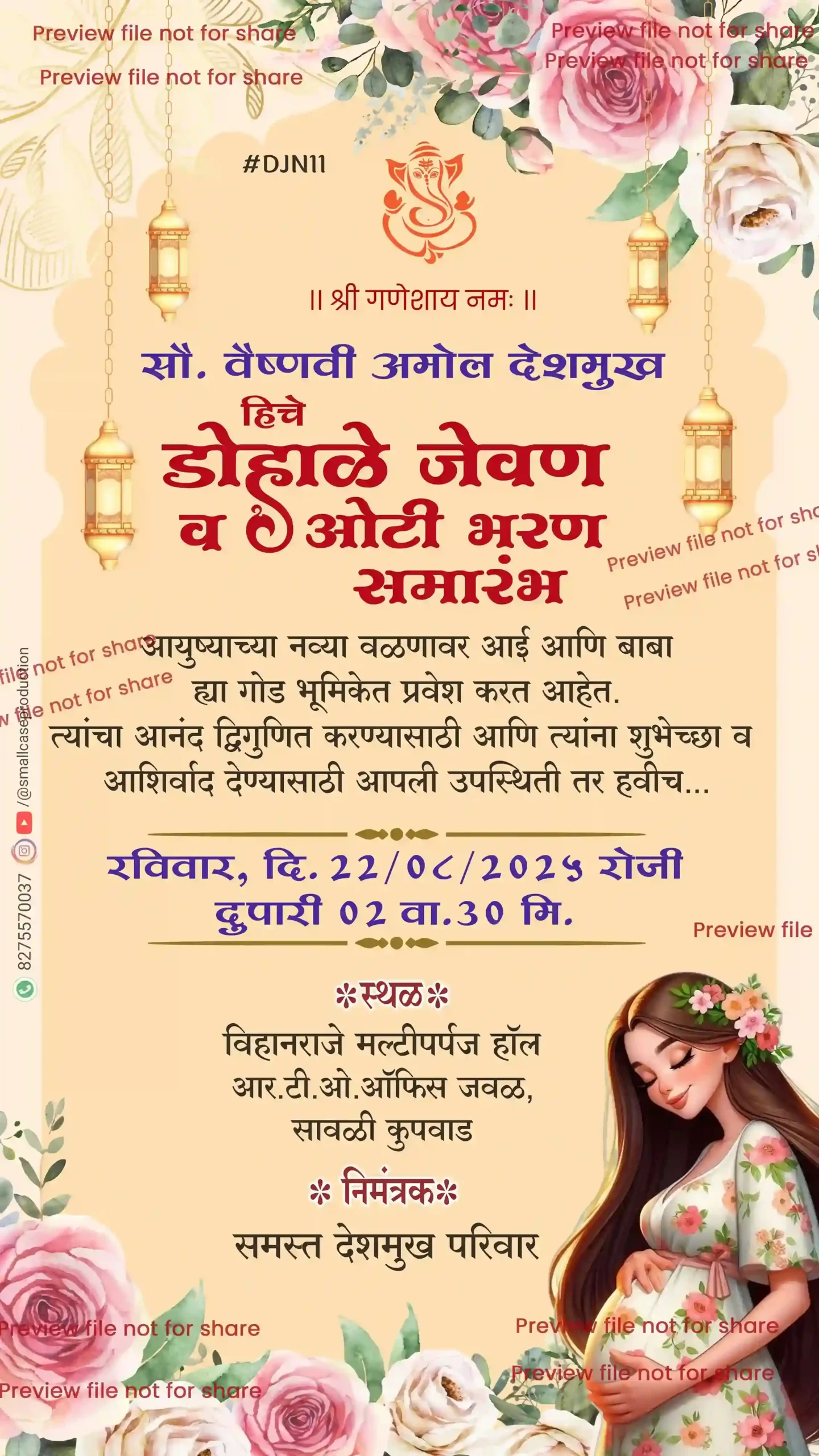 DJN 11 | Marathi Baby Shower Invitation Card Without Photo | मराठी डोहाळेजेवण पत्रिका - Smallcase Production