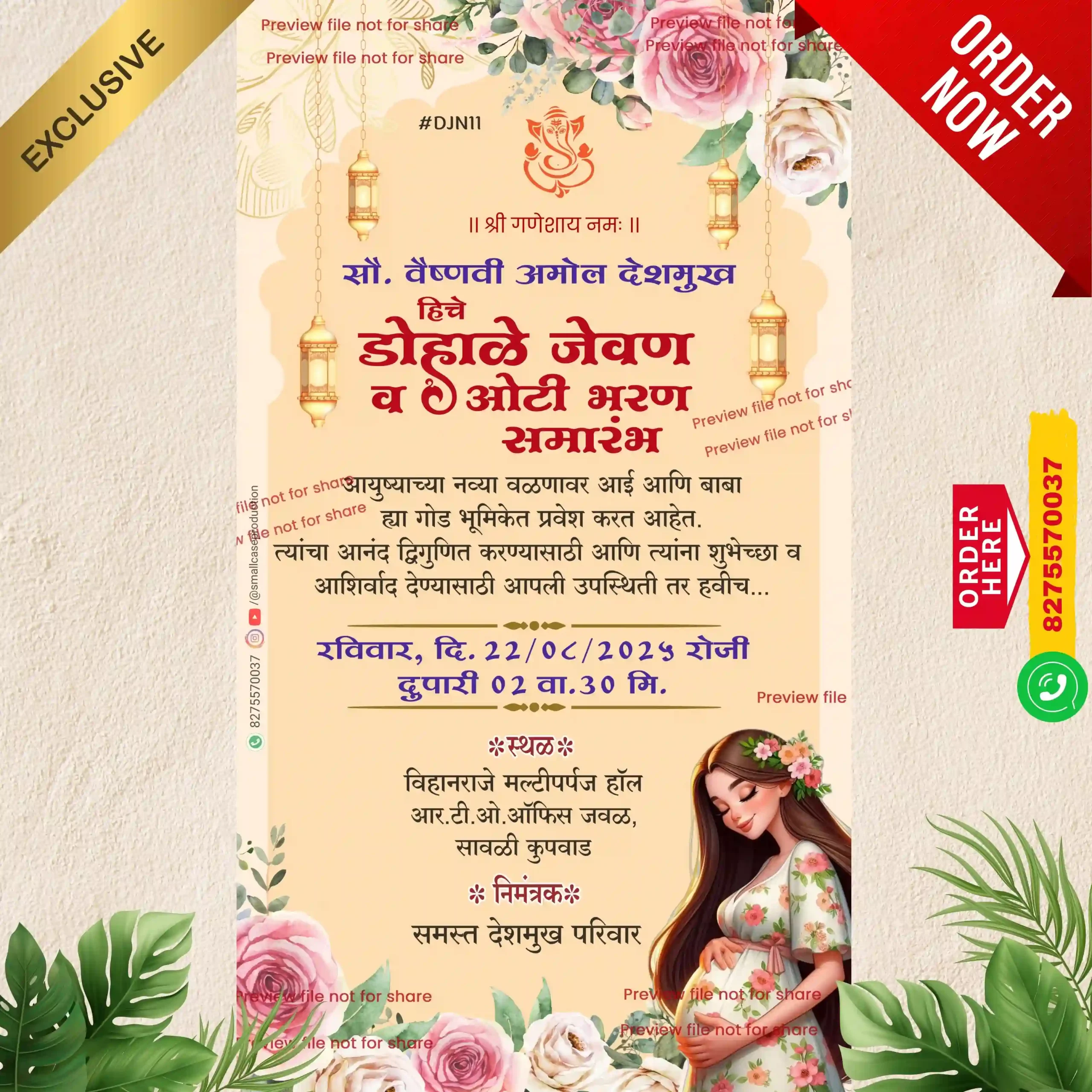 DJN 11 | Marathi Baby Shower Invitation Card Without Photo | मराठी डोहाळेजेवण पत्रिका