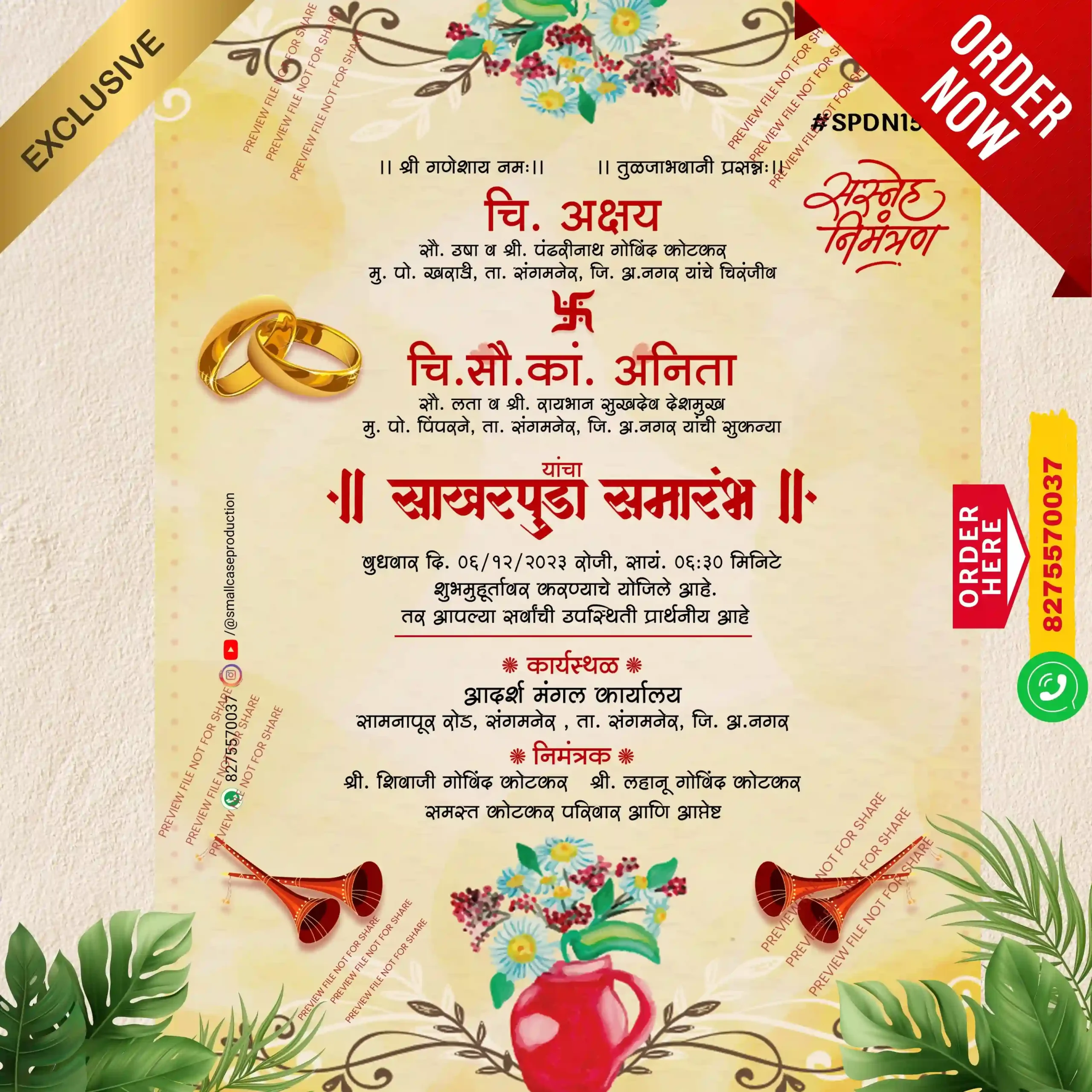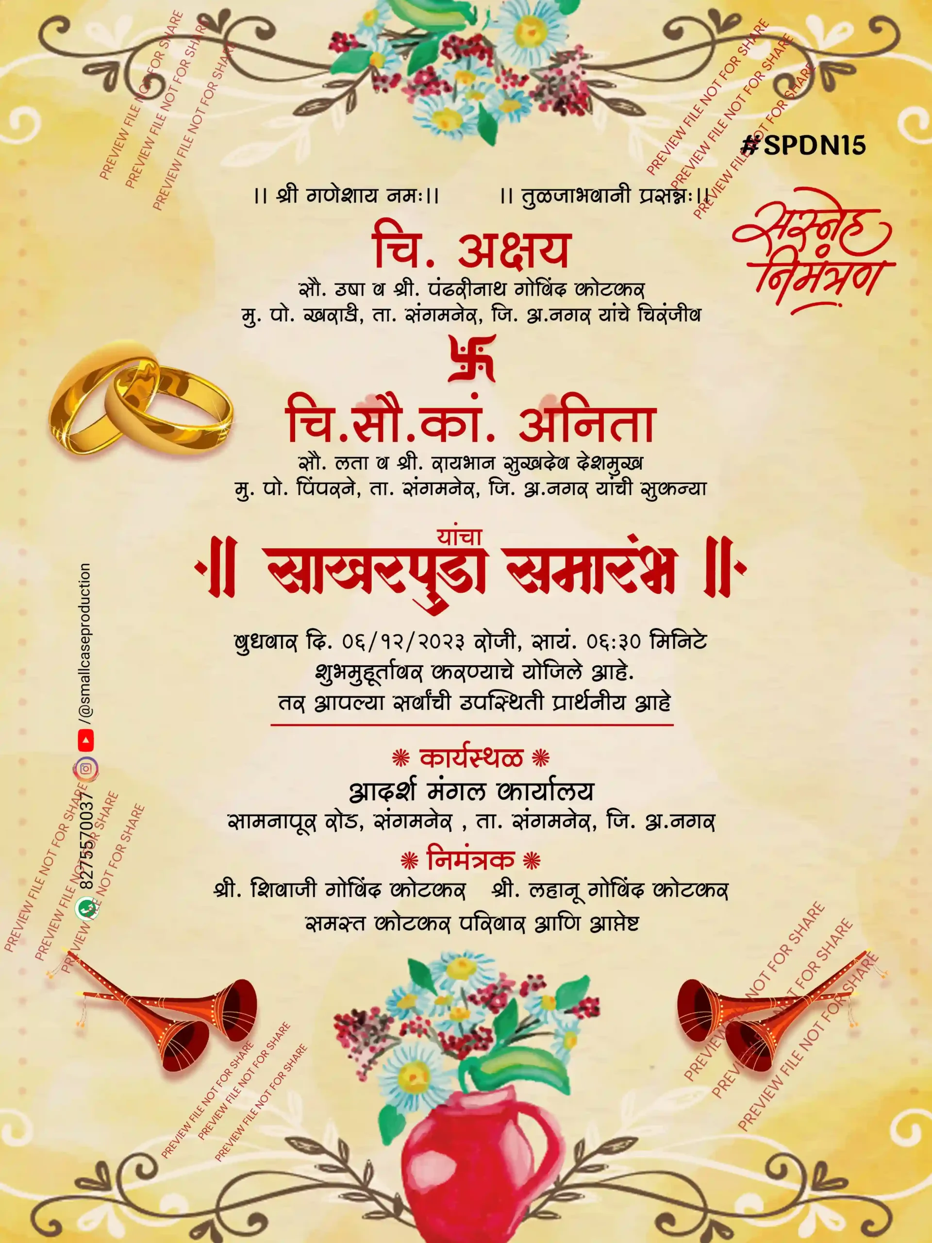 SPDN 15 |Marathi Engagement Invitation Card | मराठी साखरपुडा पत्रिका - Smallcase Production