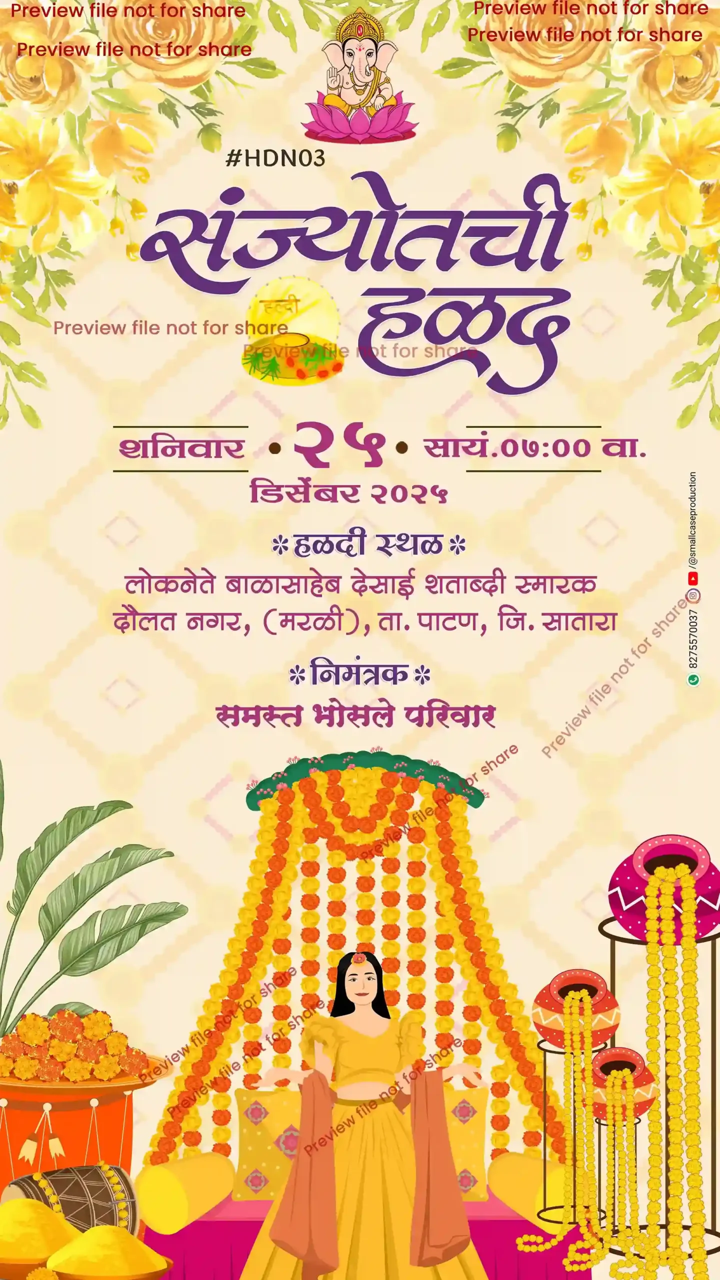 HDN 03 | Marathi Haldi Invitation Card Without Photo | मराठी हळदी पत्रिका - Smallcase Production