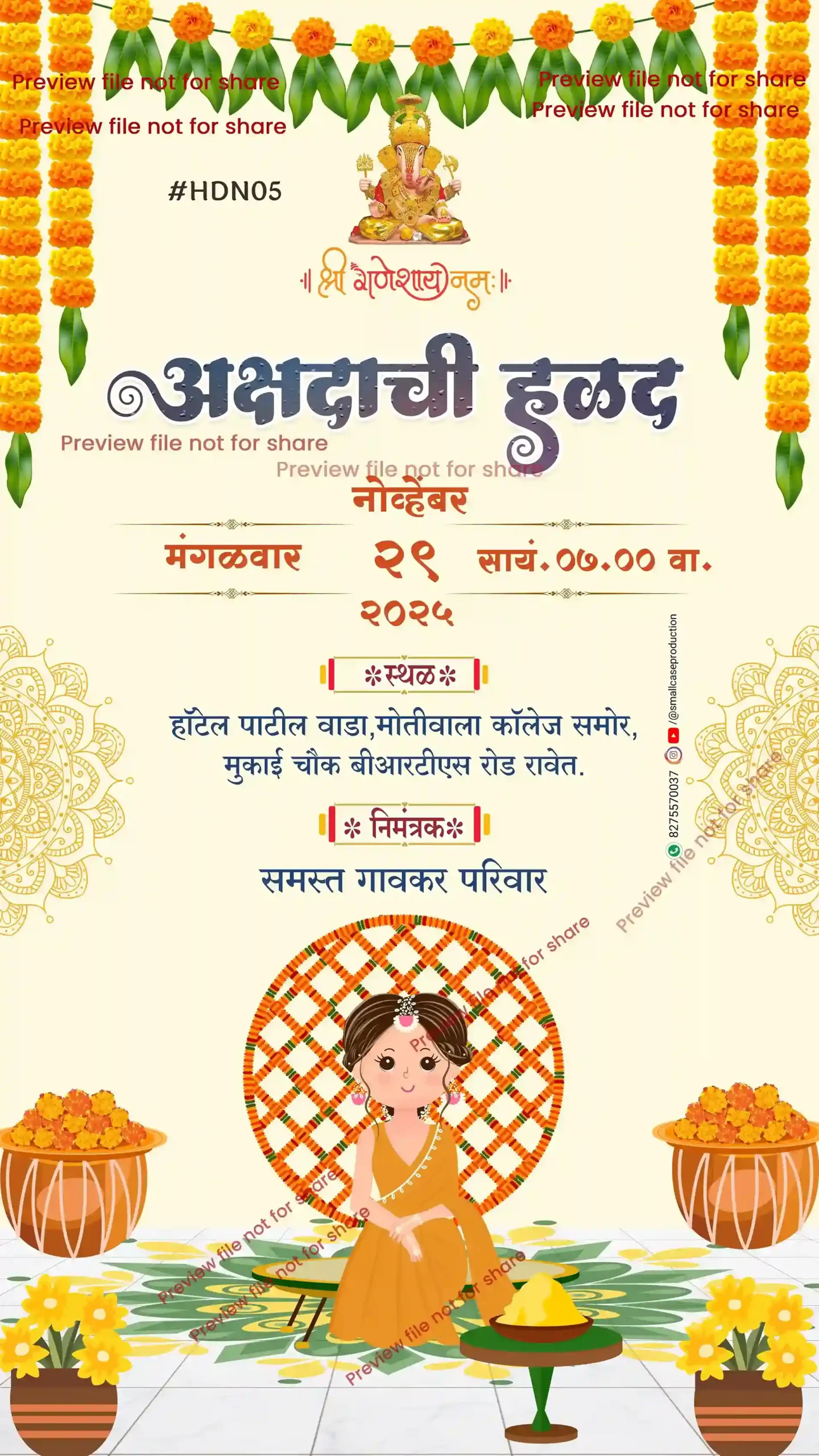 HDN 05 | Marathi Haldi Invitation Card Without Photo | मराठी हळदी पत्रिका - Smallcase Production