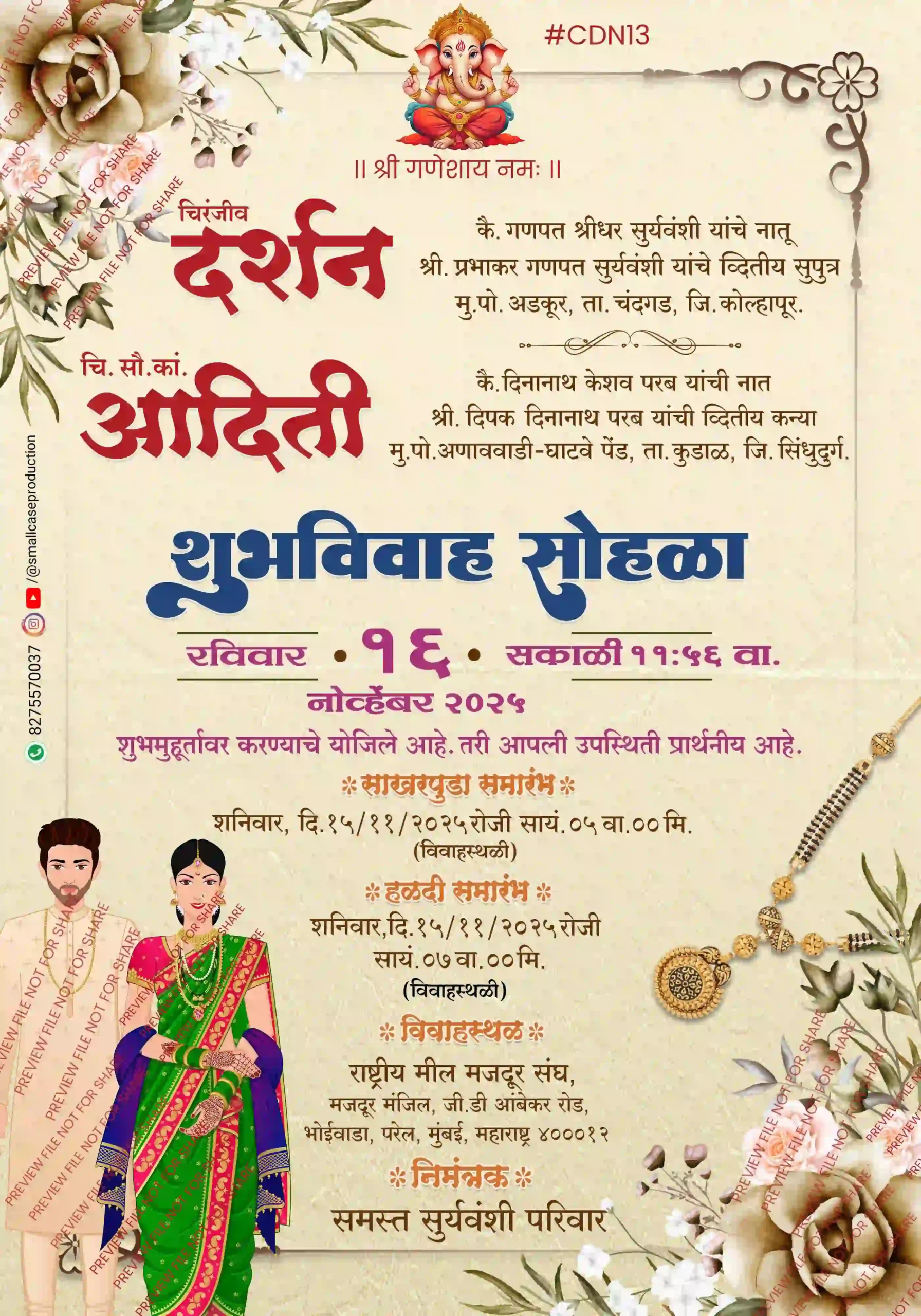CDN 13 | Marathi Wedding Invitation Card With Doodle | मराठी लग्नपत्रिका डूडल सहित - Smallcase Production
