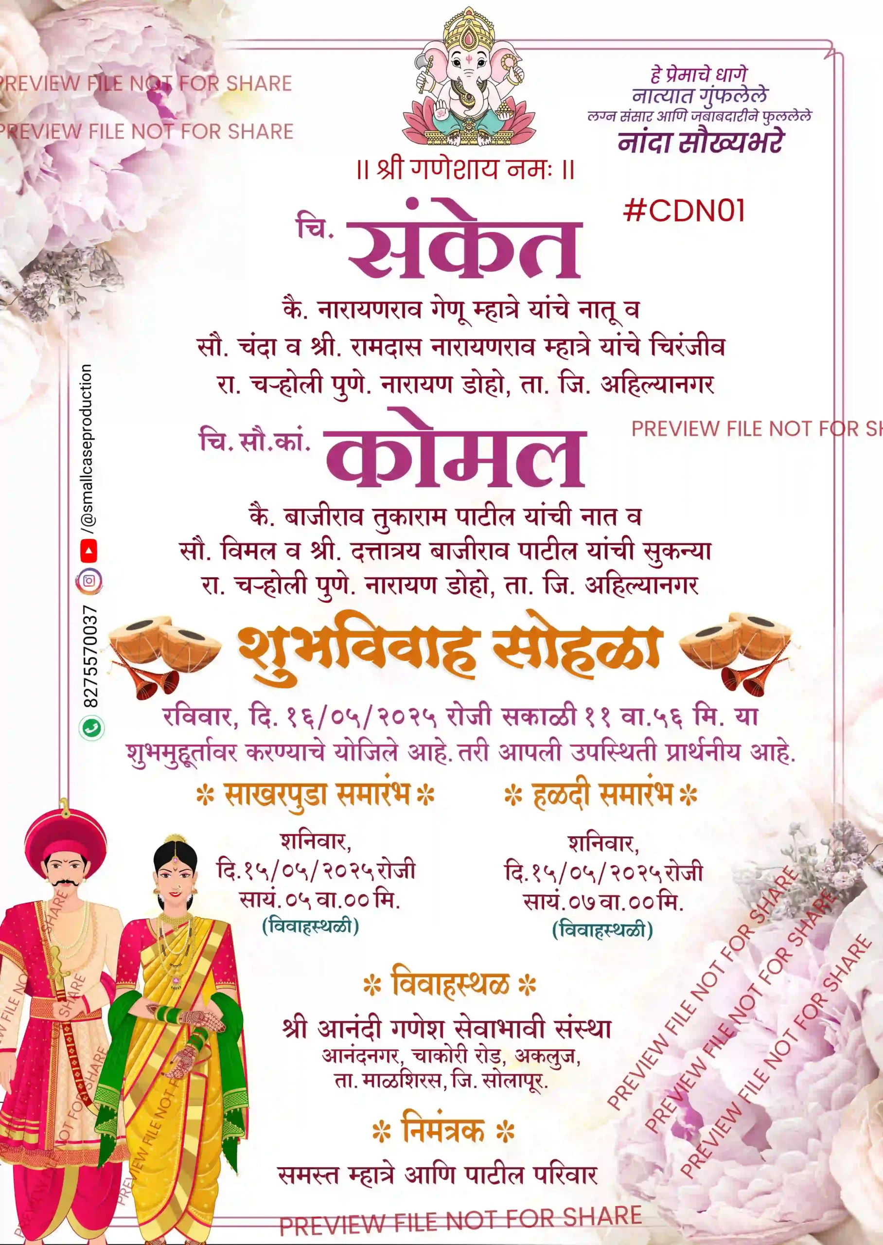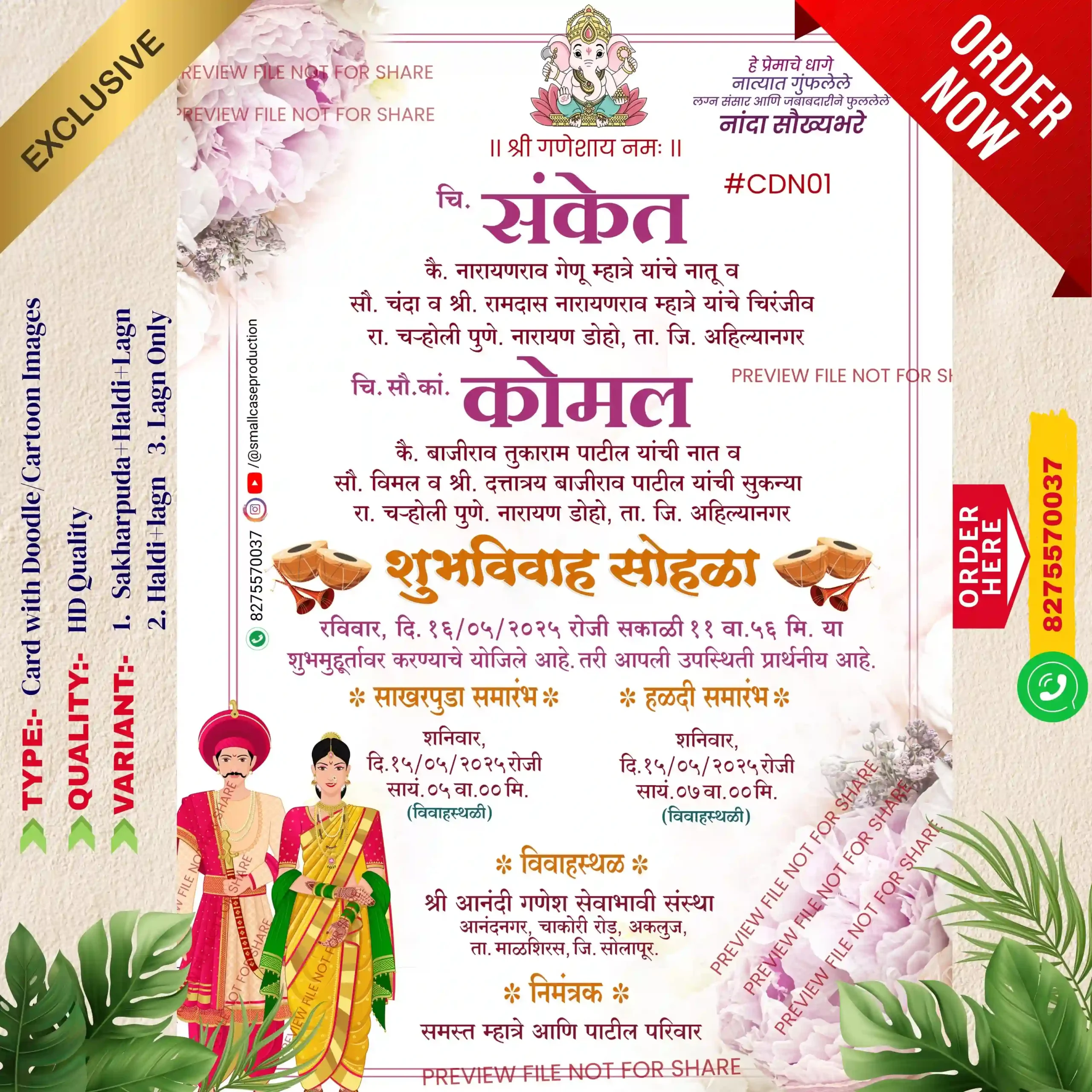 आत्ता फक्त DEMO असल्याने HD नसेल, परंतु आपल्याला इन्व्हिटेशन कार्ड एचडी क्वालिटीमध्ये व्हॉट्सअॅप किंवा ई-मेलद्वारे पाठवले जाईल, ज्यामुळे त्याची गुणवत्ता टिकून राहील.