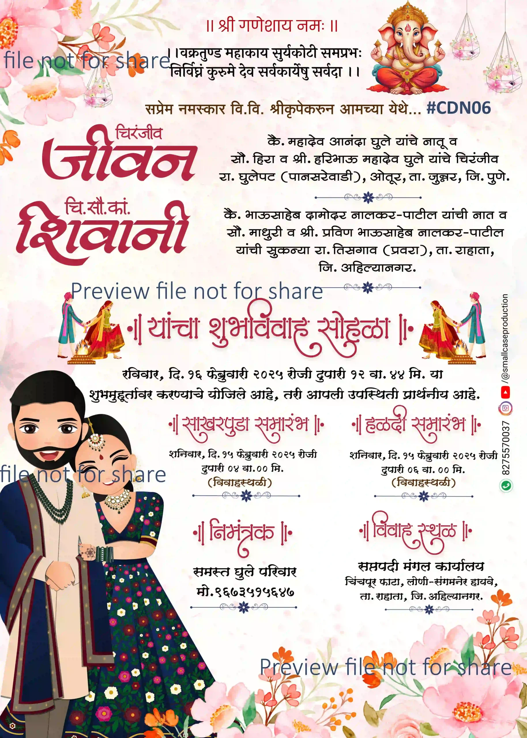 CDN 06 | Marathi Wedding Invitation Card With Doodle | मराठी लग्नपत्रिका डूडल सहित - Smallcase Production