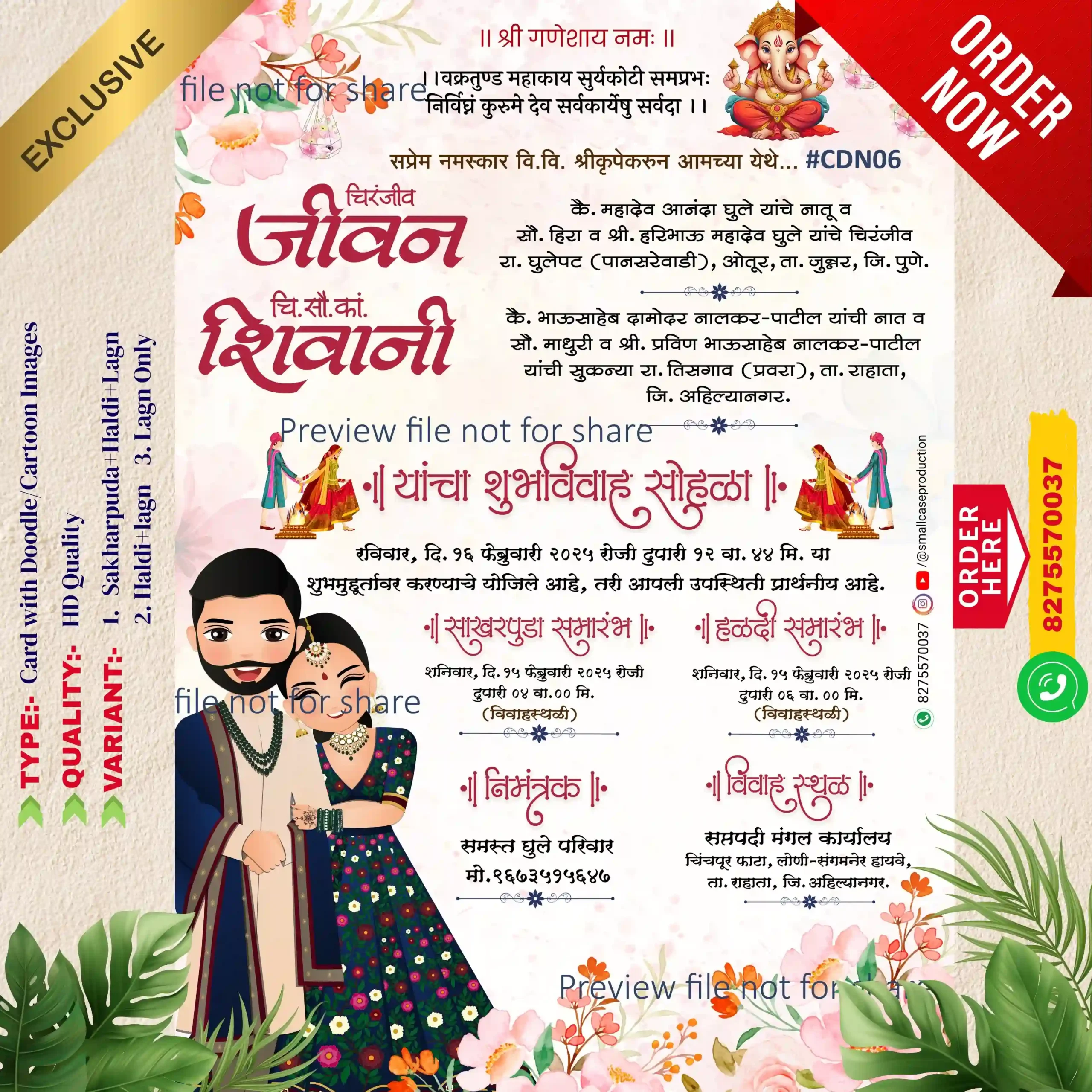 CDN 06 | Marathi Wedding Invitation Card With Doodle | मराठी लग्नपत्रिका डूडल सहित