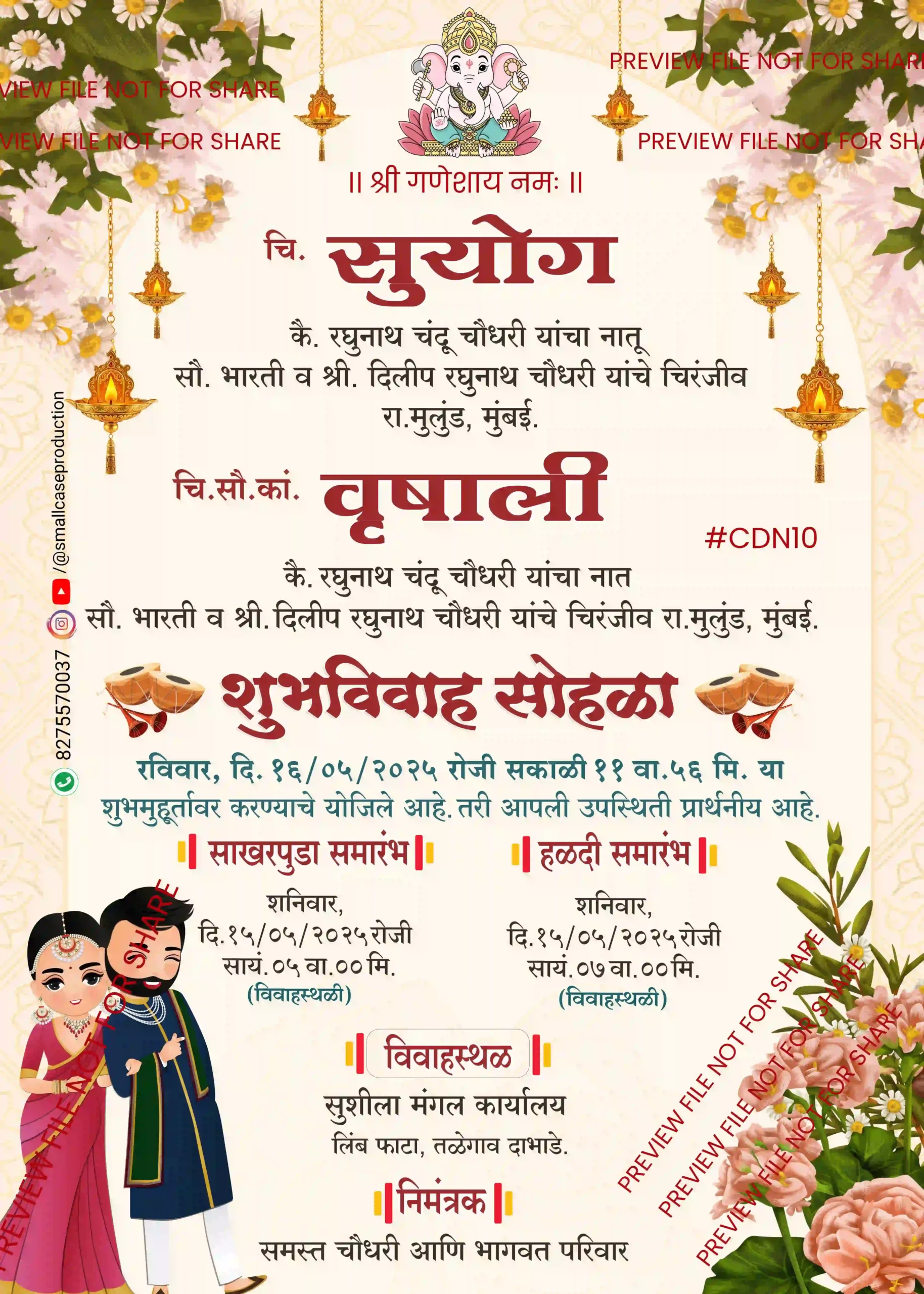 आत्ता फक्त DEMO असल्याने HD नसेल, परंतु आपल्याला इन्व्हिटेशन कार्ड एचडी क्वालिटीमध्ये व्हॉट्सअॅप किंवा ई-मेलद्वारे पाठवले जाईल, ज्यामुळे त्याची गुणवत्ता टिकून राहील.