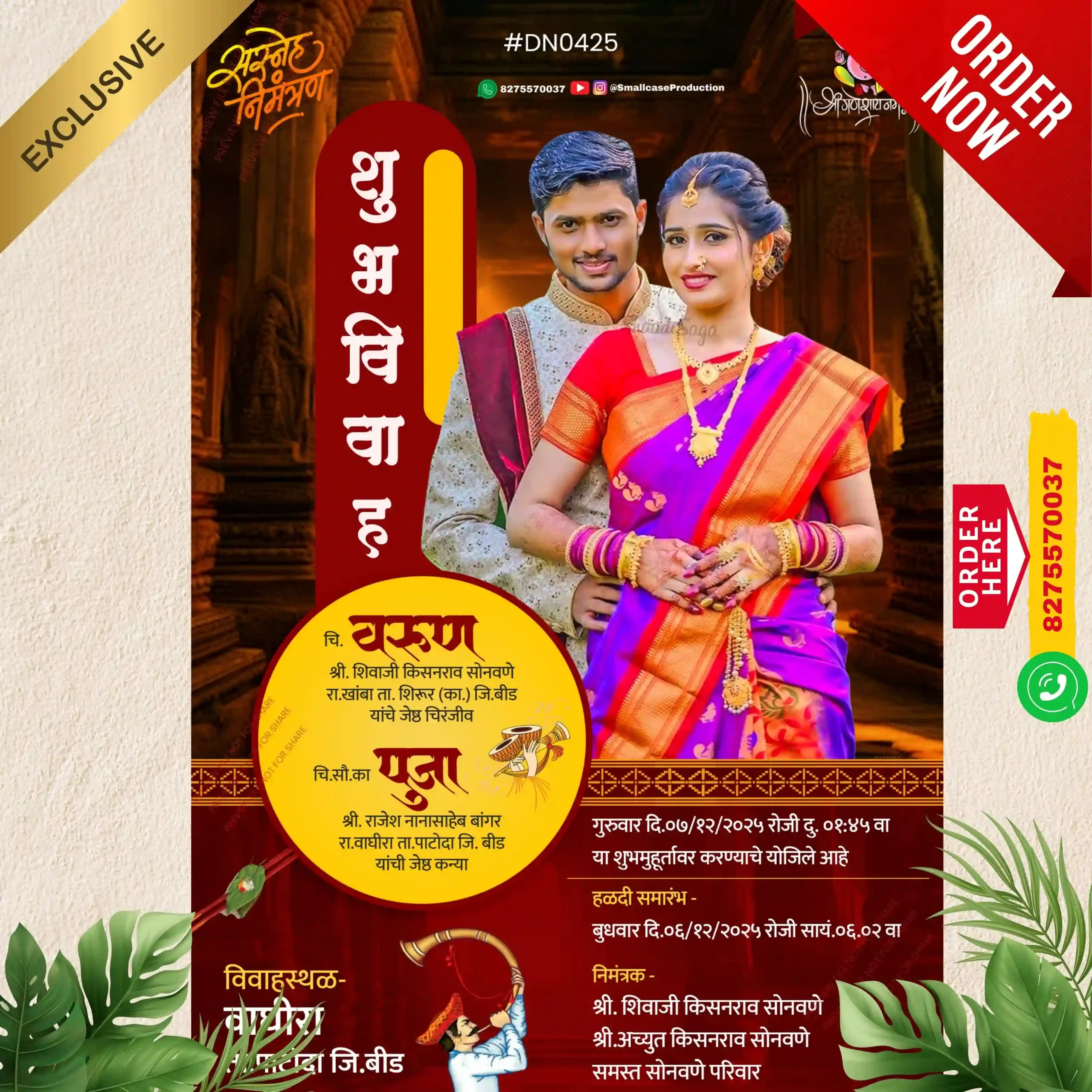 DN 0425 | Marathi Wedding Invitation Card With Photo | मराठी लग्नपत्रिका फोटो सहित - Smallcase Production
