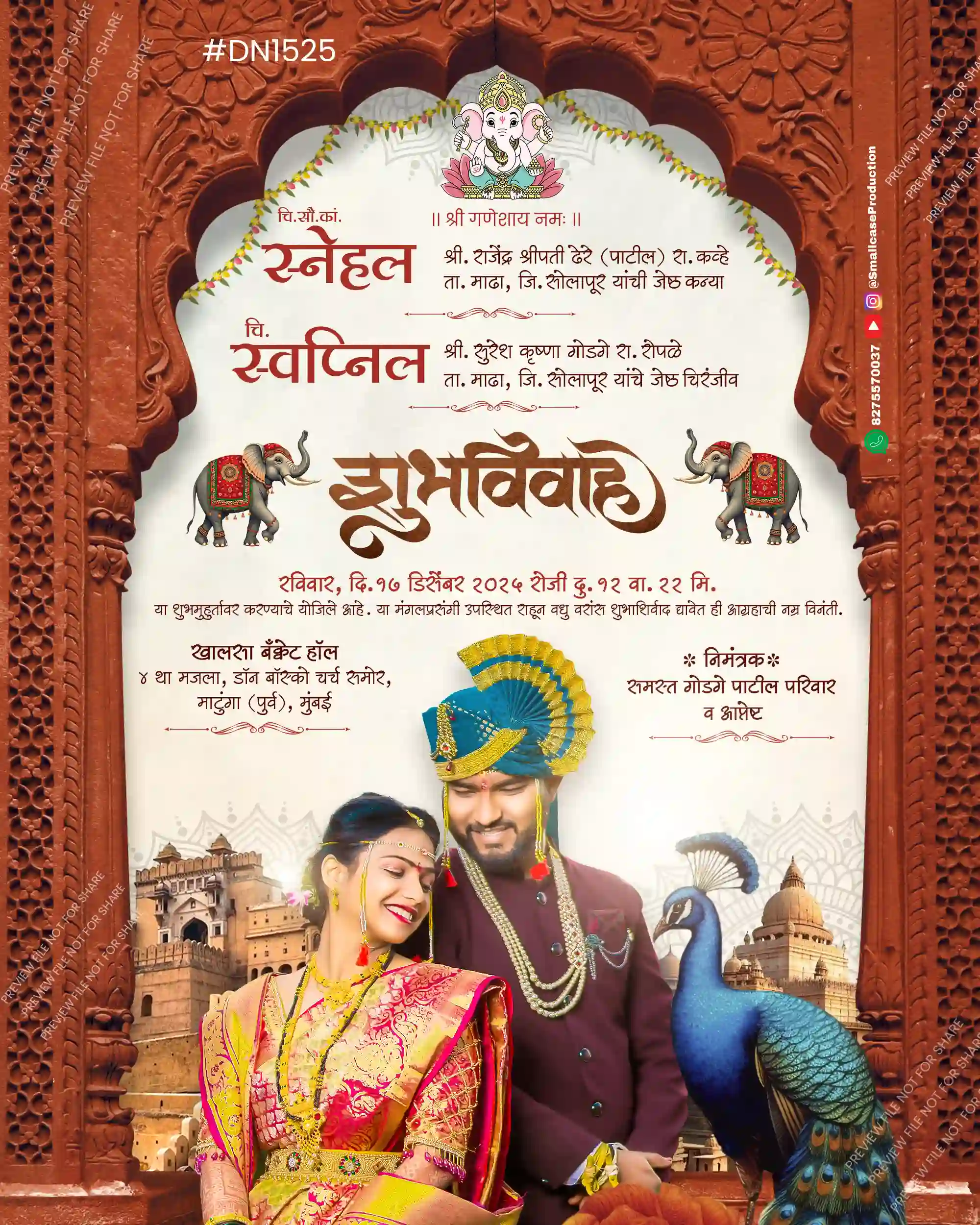 ही एक खास लग्नपत्रिका आहे ज्यामध्ये तुमचा फोटो उत्कृष्टरीत्या एडिट करून टाकला जाईल. हे कार्ड तुम्ही खालील प्रकारे कस्टमाइज करू शकता