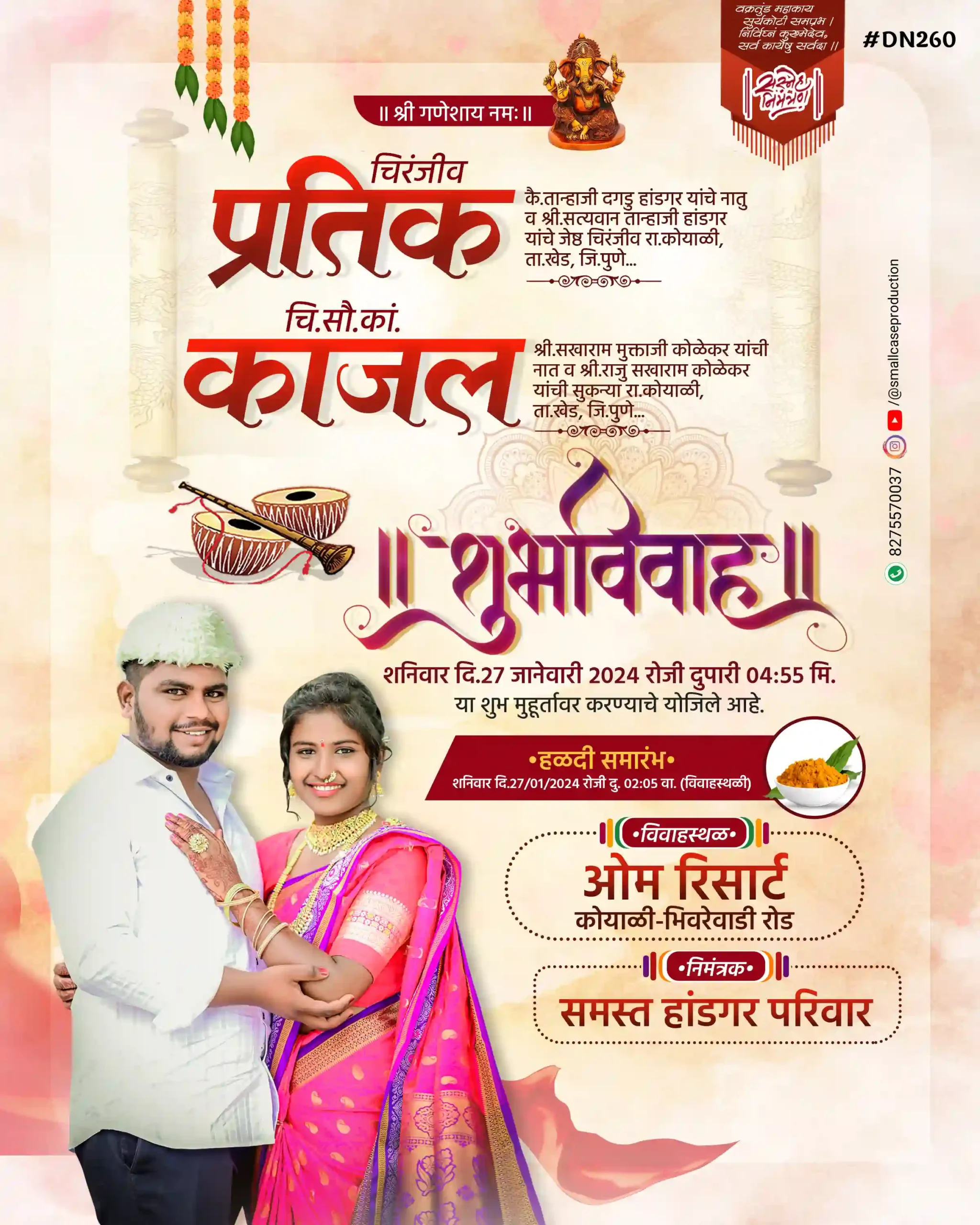 ही एक खास लग्नपत्रिका आहे ज्यामध्ये तुमचा फोटो उत्कृष्टरीत्या एडिट करून टाकला जाईल. हे कार्ड तुम्ही खालील प्रकारे कस्टमाइज करू शकता