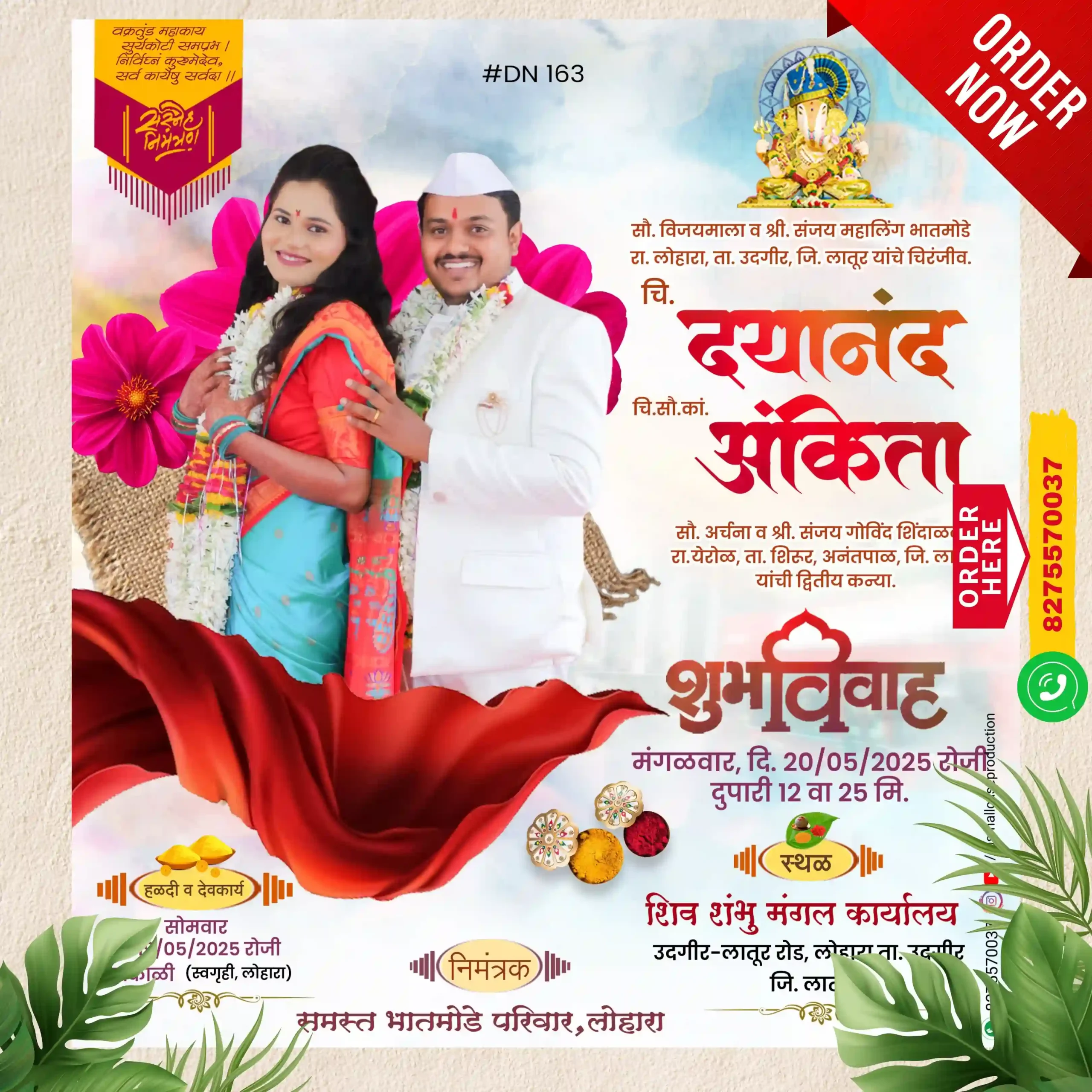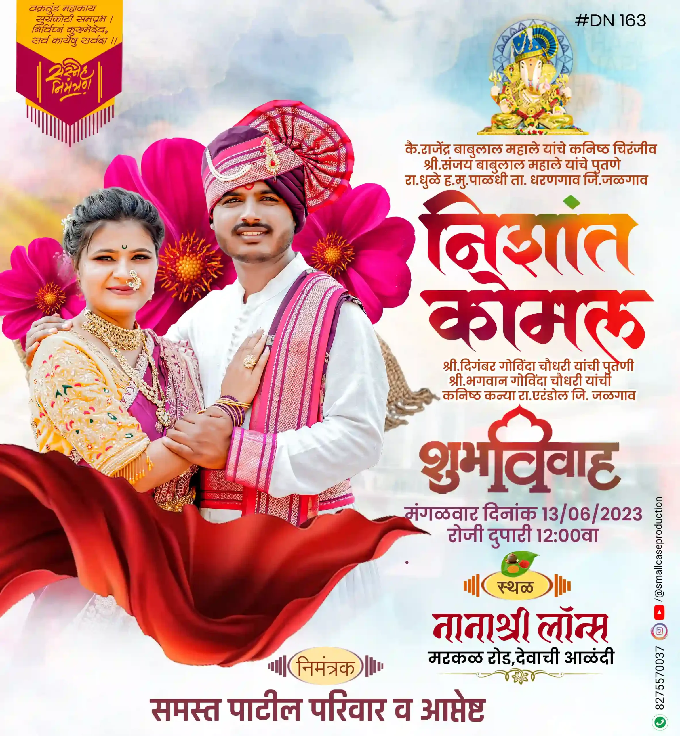 DN 163| Marathi Wedding Invitation Card With Photo | मराठी लग्नपत्रिका फोटो सहित - Smallcase Production