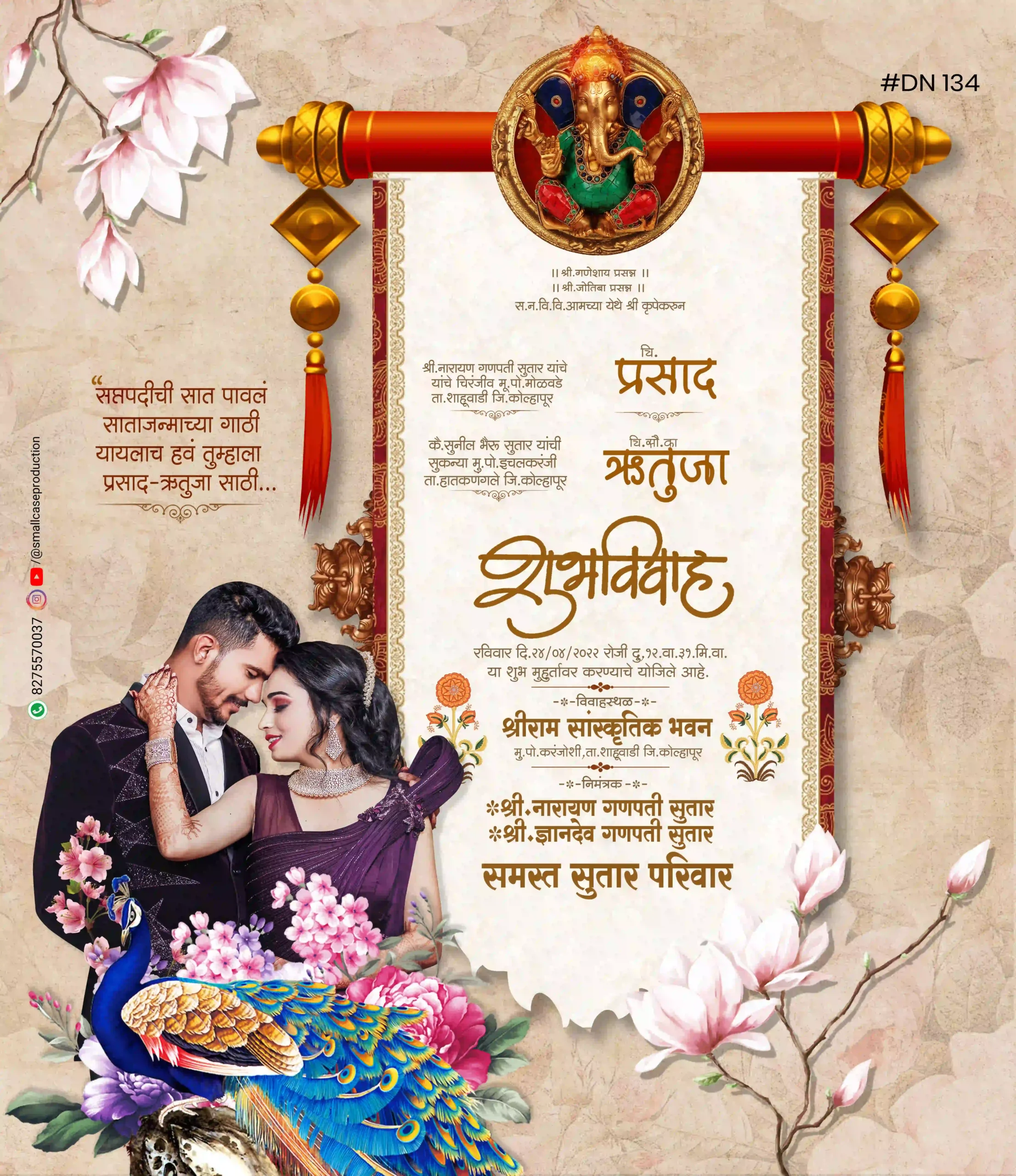 ही एक खास लग्नपत्रिका आहे ज्यामध्ये तुमचा फोटो उत्कृष्टरीत्या एडिट करून टाकला जाईल. हे कार्ड तुम्ही खालील प्रकारे कस्टमाइज करू शकता