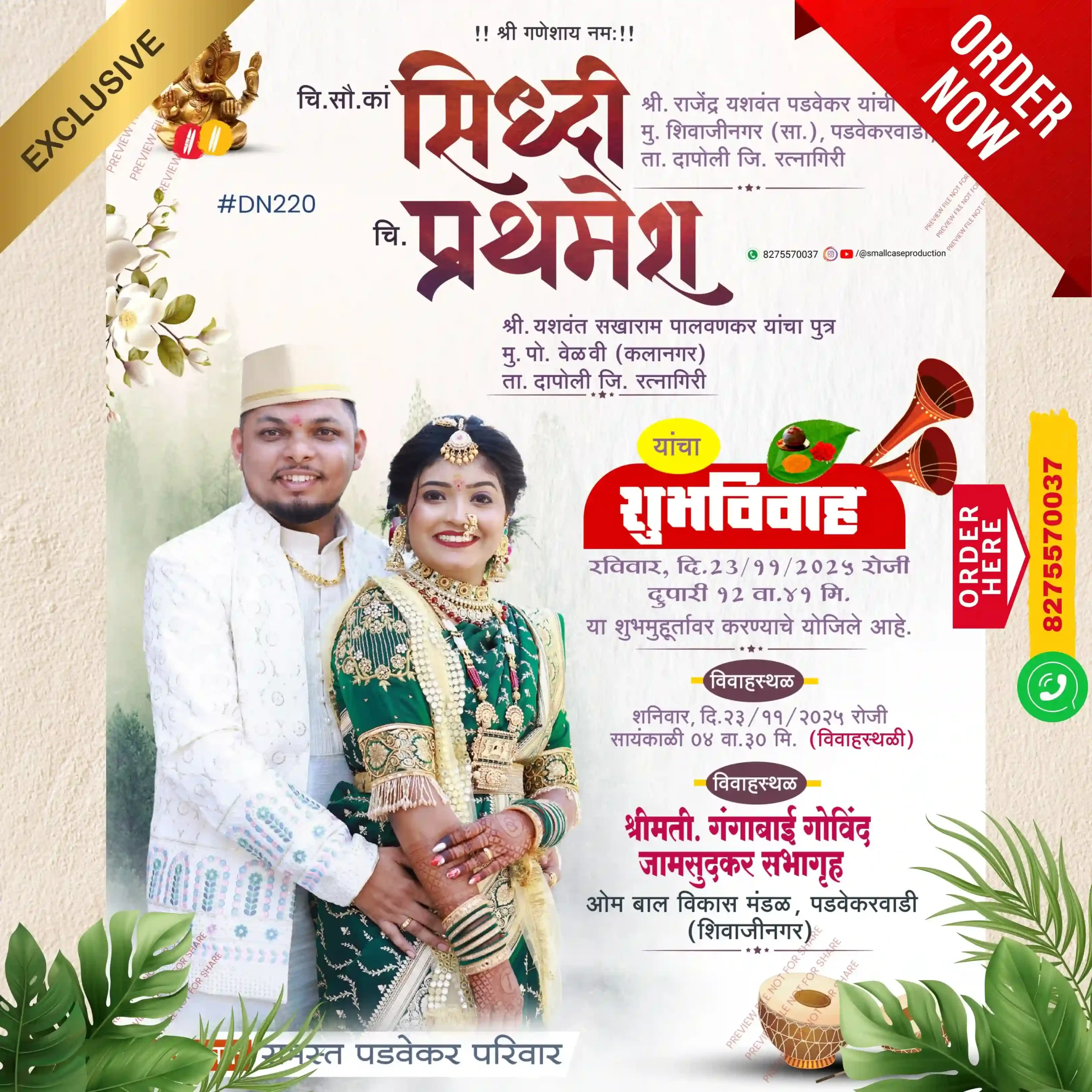 DN 220| Marathi Wedding Invitation Card With Photo | मराठी लग्नपत्रिका फोटो सहित - Smallcase Production