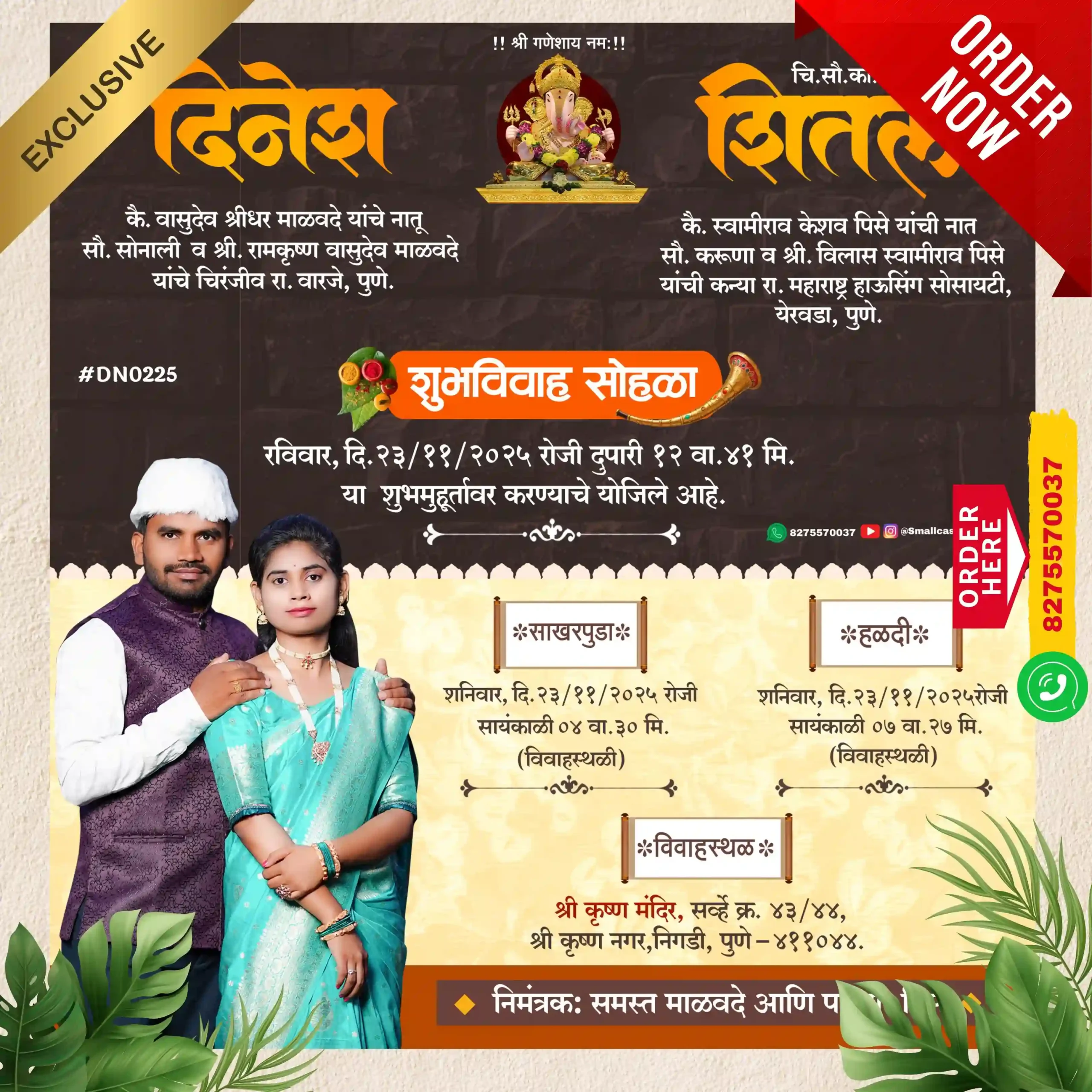 DN 0225 |Marathi Wedding Invitation Card With Photo | मराठी लग्नपत्रिका फोटो सहित - Smallcase Production