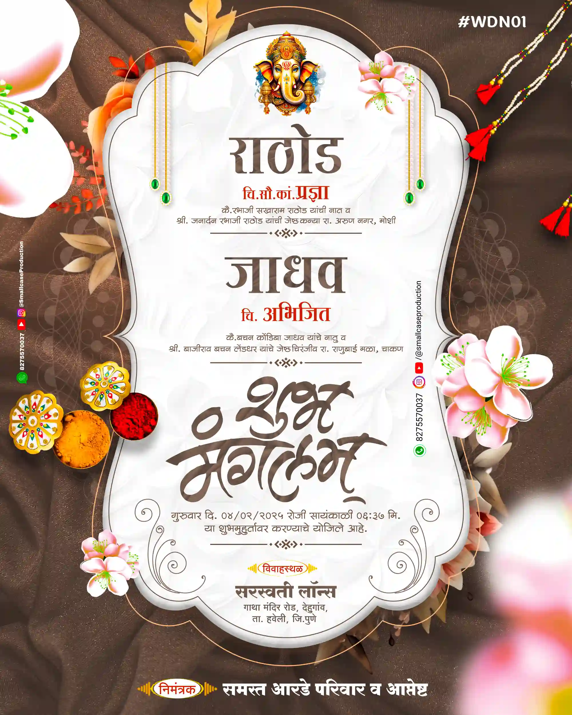 WDN 01 | Marathi Wedding Invitation Card Without Photo | मराठी लग्नपत्रिका - Smallcase Production