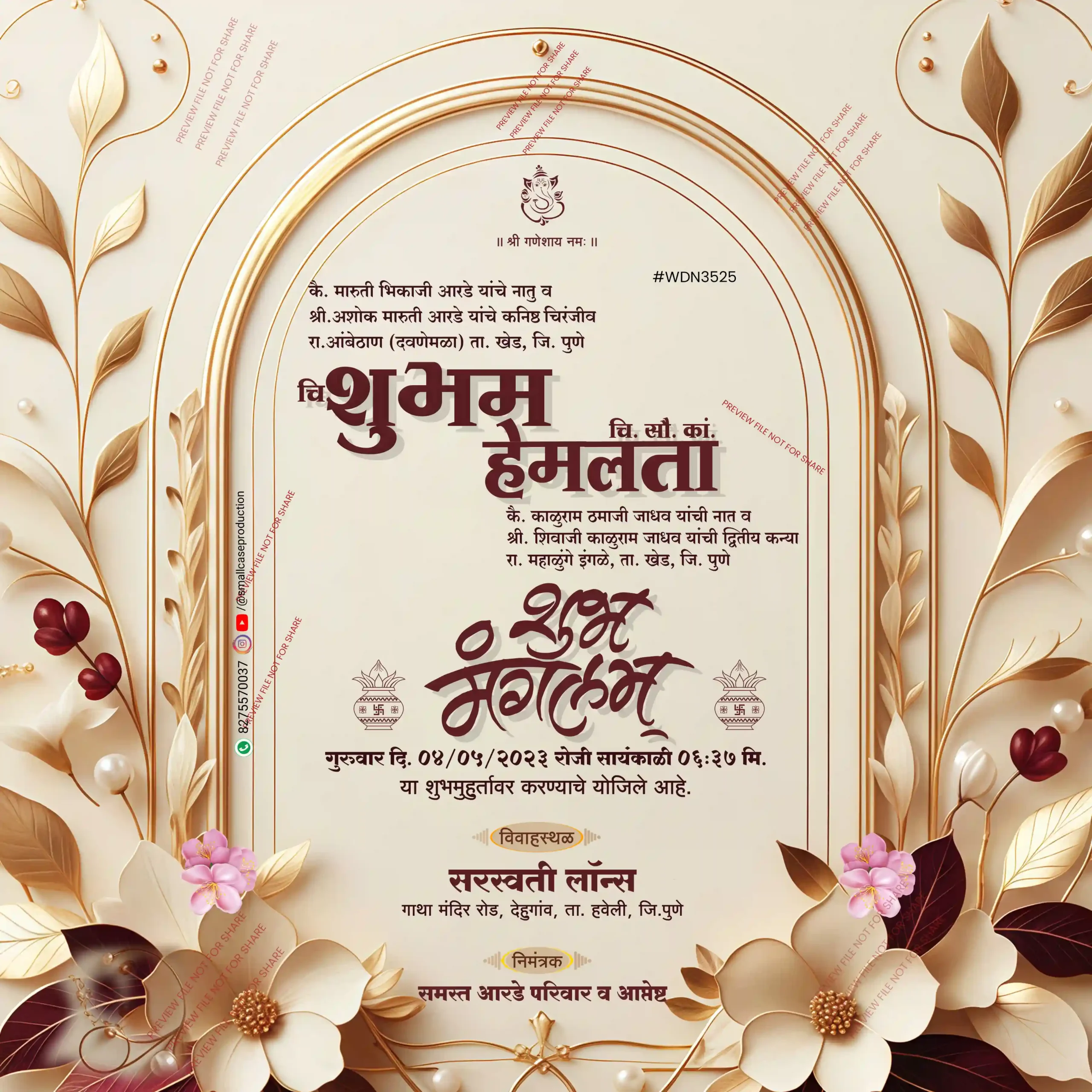 WDN 3625 | Marathi Wedding Invitation Card 2D Without Photo | मराठी लग्नपत्रिका - Smallcase Production