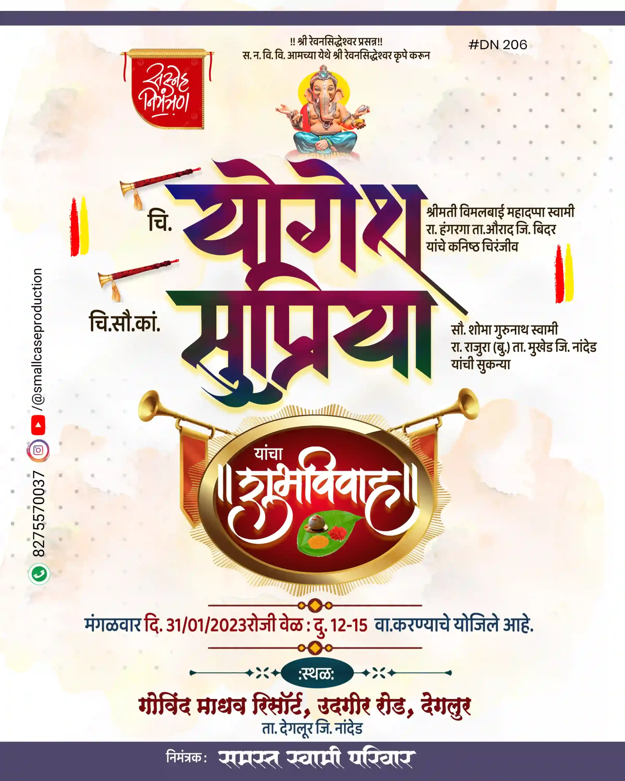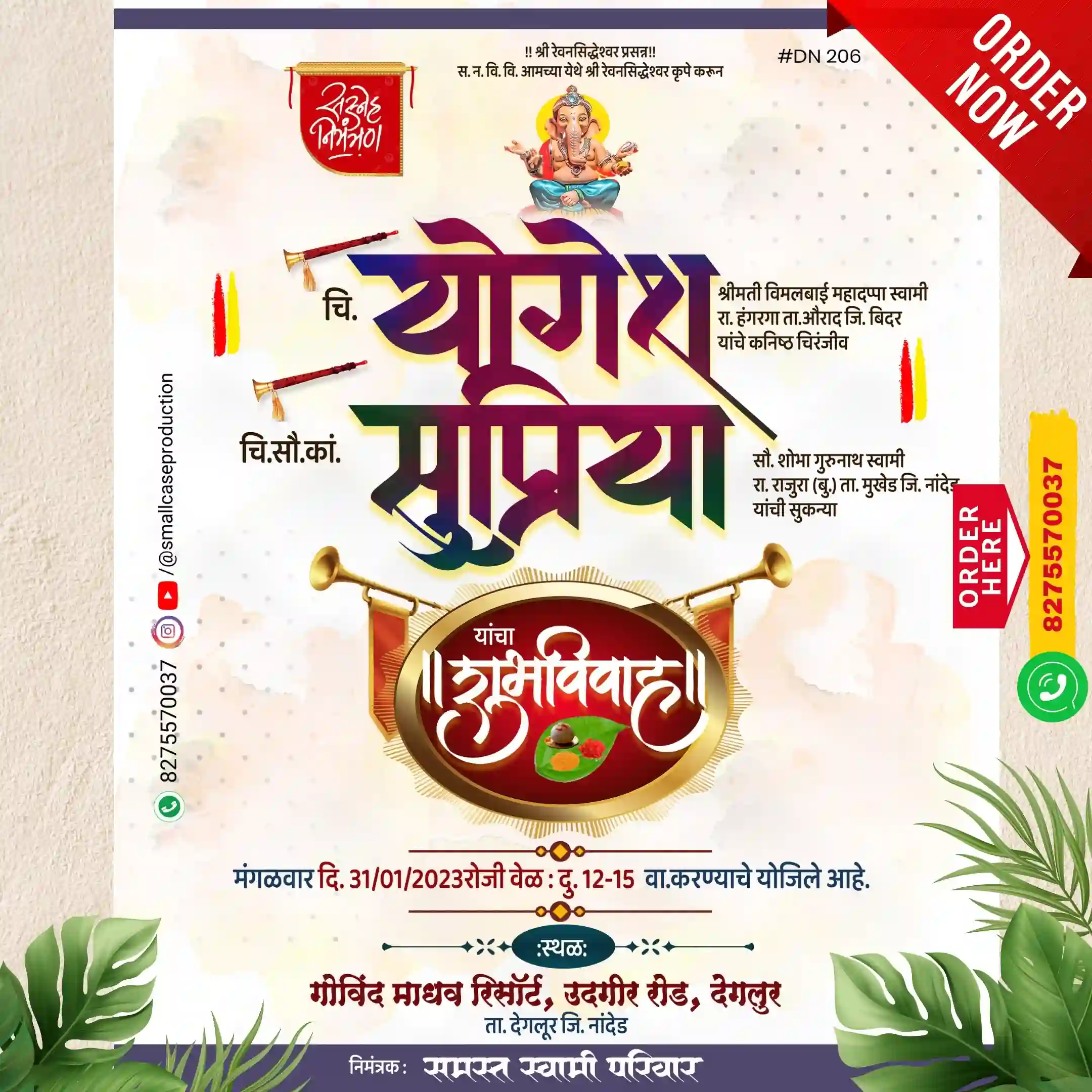 WDN 206 | Marathi Wedding Invitation Card Without Photo | मराठी लग्नपत्रिका - Smallcase Production
