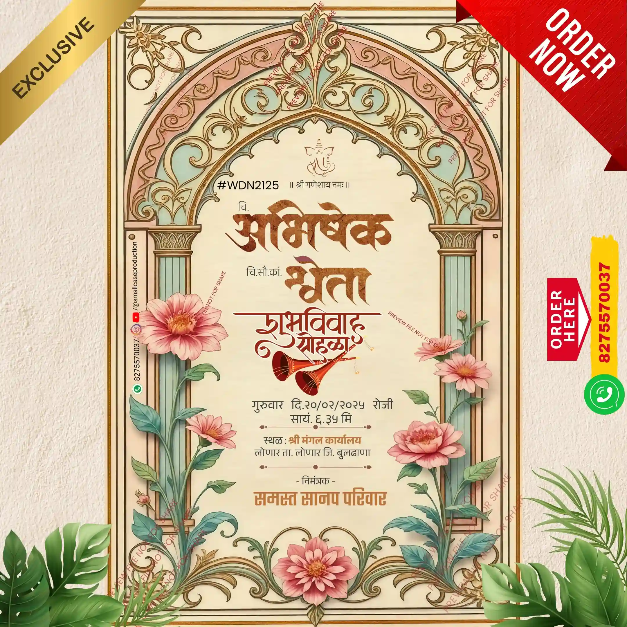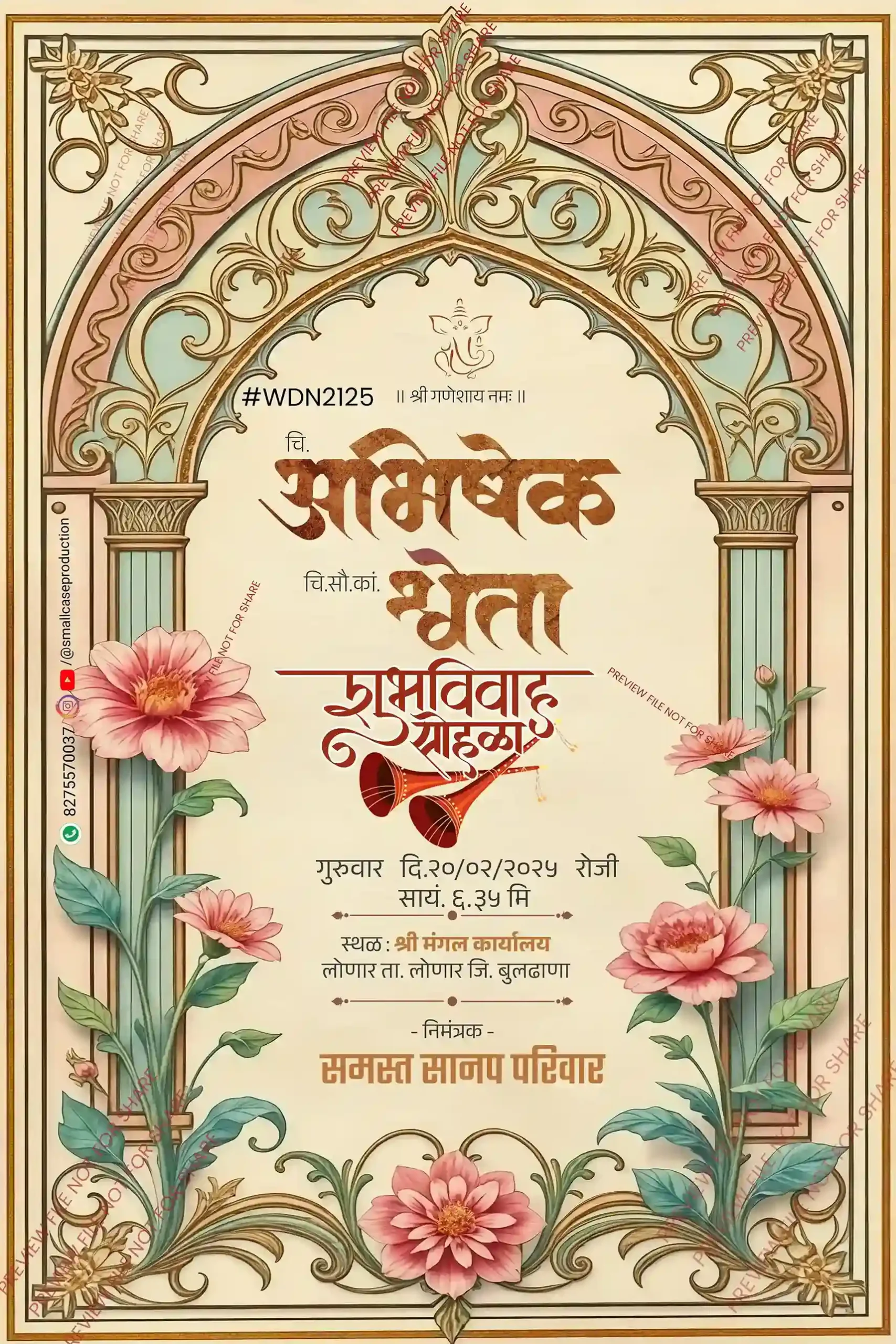 WDN 0725 | Marathi Wedding Invitation Card HD Without Photo | मराठी लग्नपत्रिका