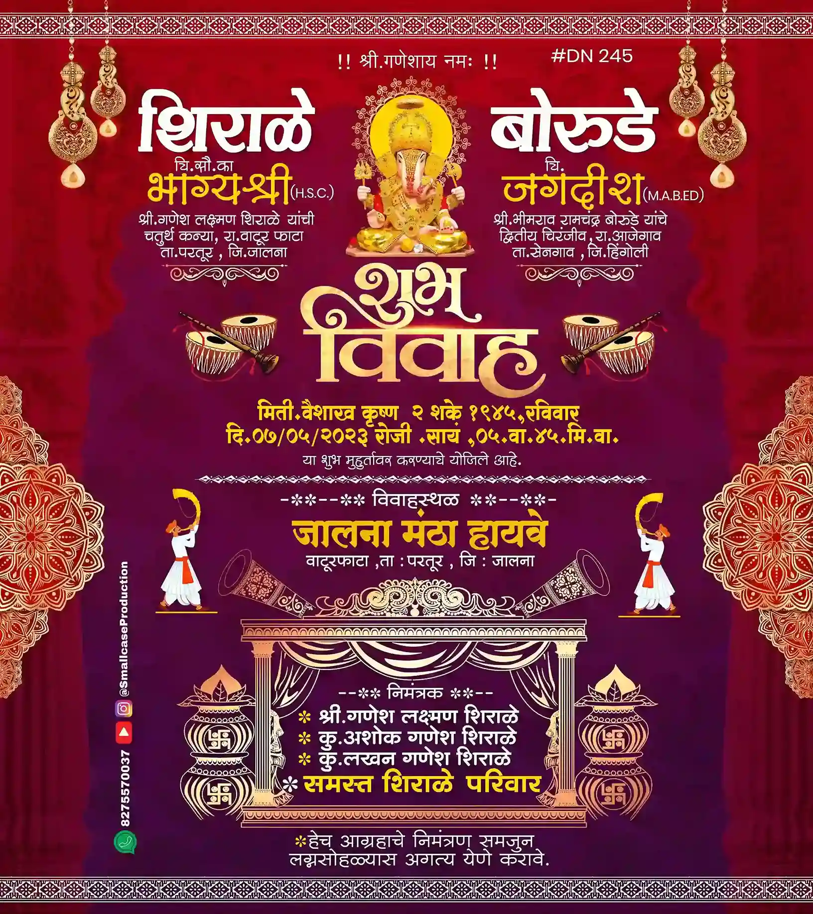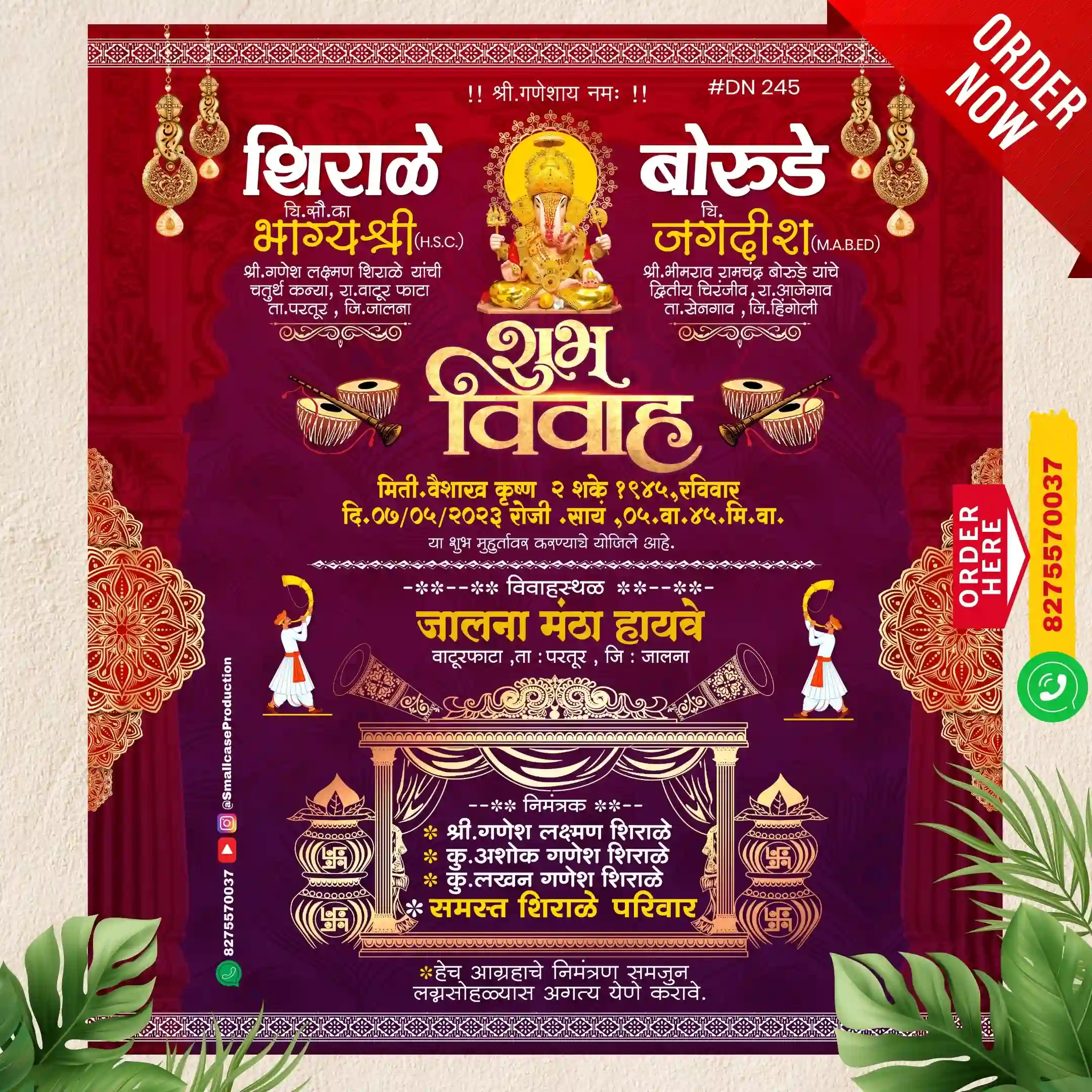 WDN 245 | Marathi Wedding Invitation Card Without Photo | मराठी लग्नपत्रिका - Smallcase Production