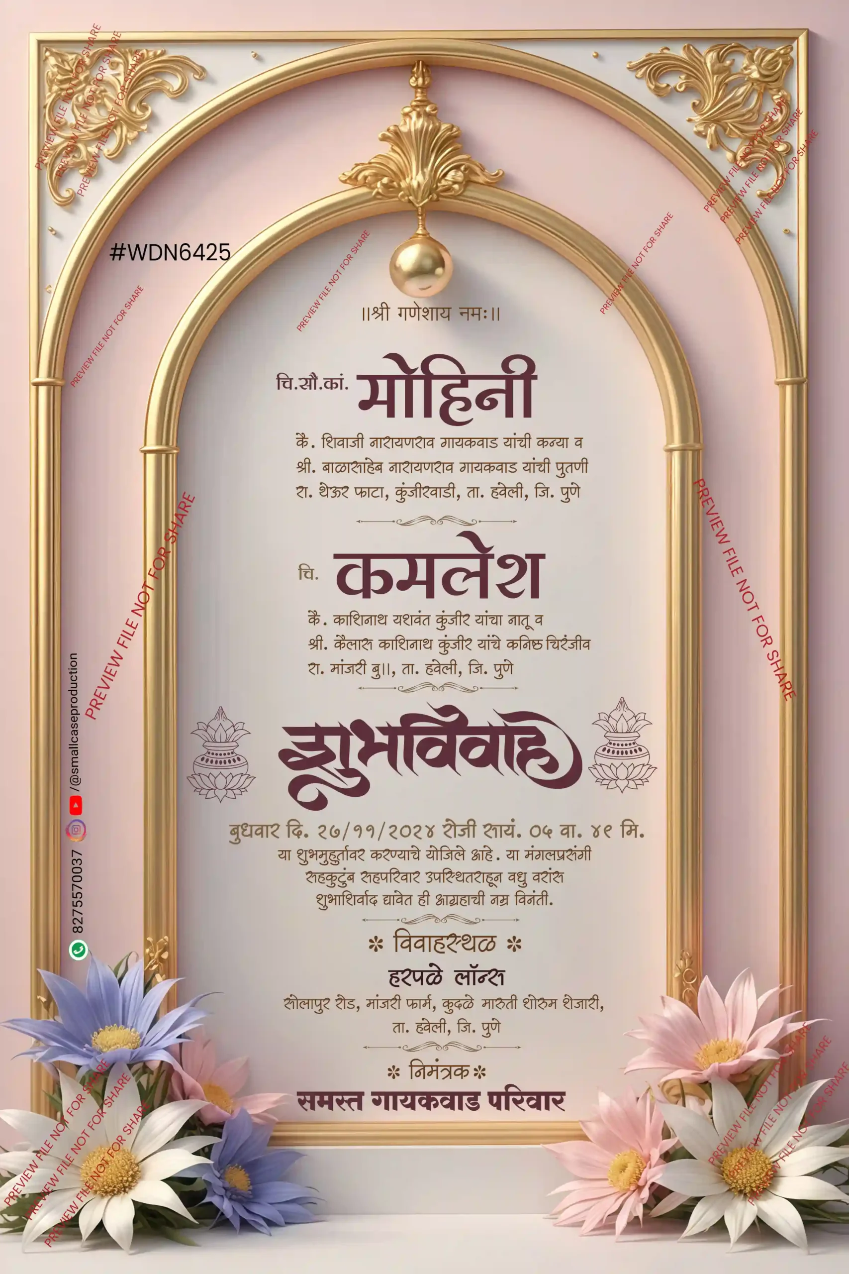 WDN 6425 | Marathi Wedding Invitation Card 2D Without Photo | मराठी लग्नपत्रिका - Smallcase Production
