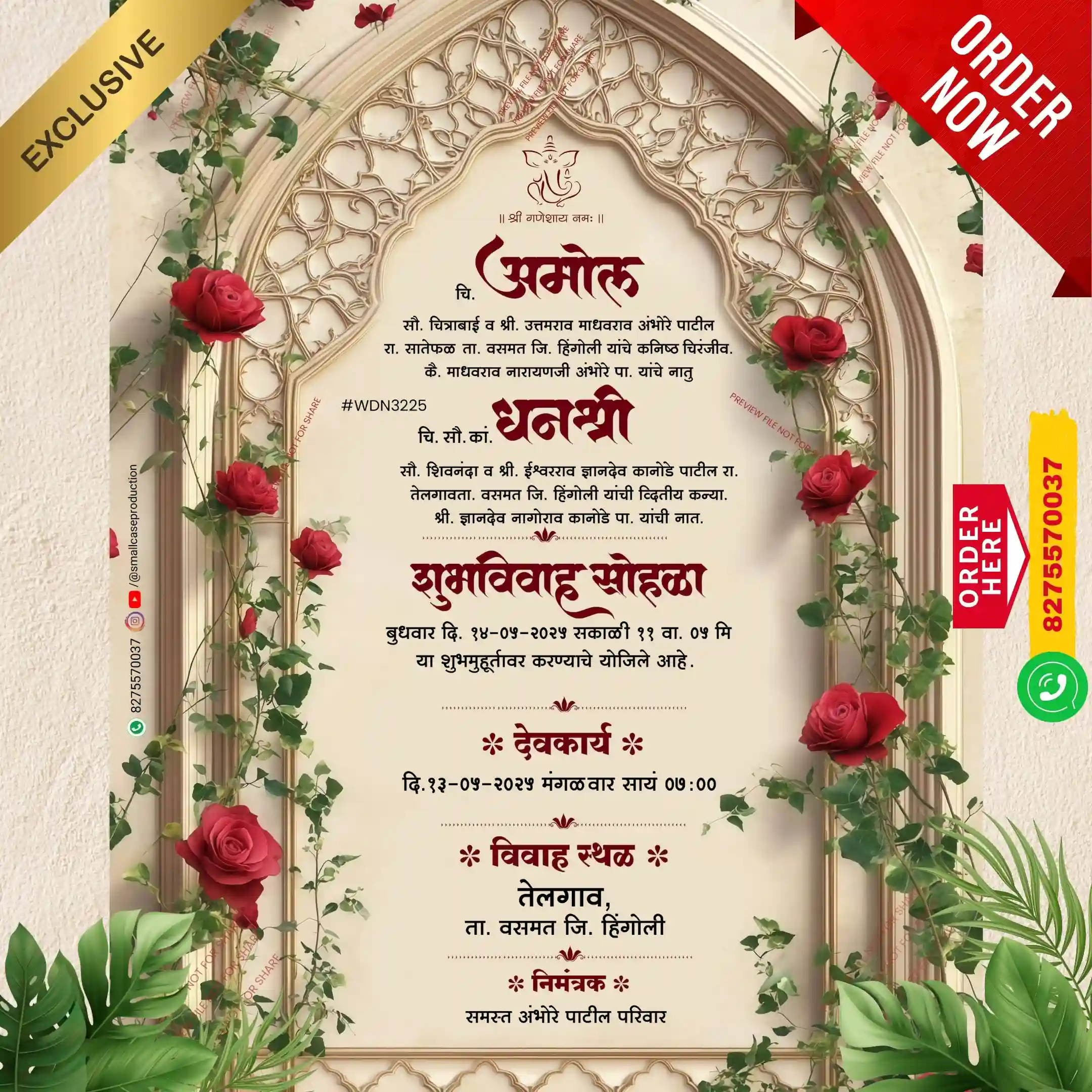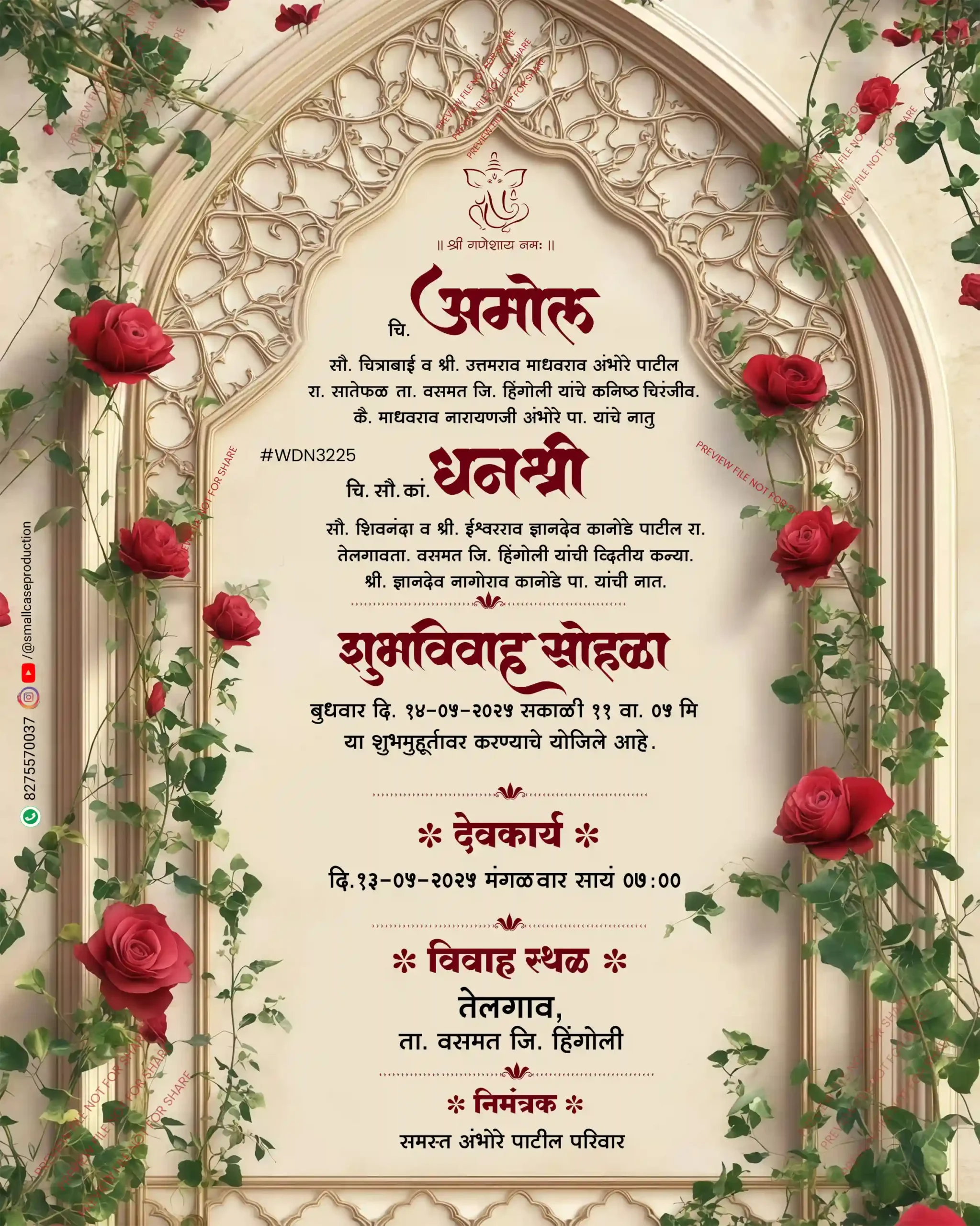 WDN 3125 | Marathi Wedding Invitation Card 2D Without Photo | मराठी लग्नपत्रिका - Smallcase Production