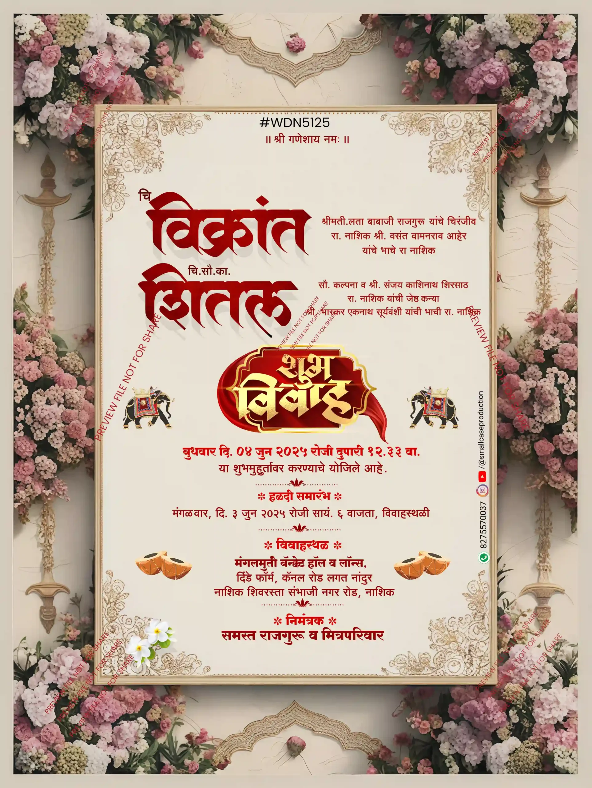 WDN 1925 | Marathi Wedding Invitation Card 2D Without Photo | मराठी लग्नपत्रिका