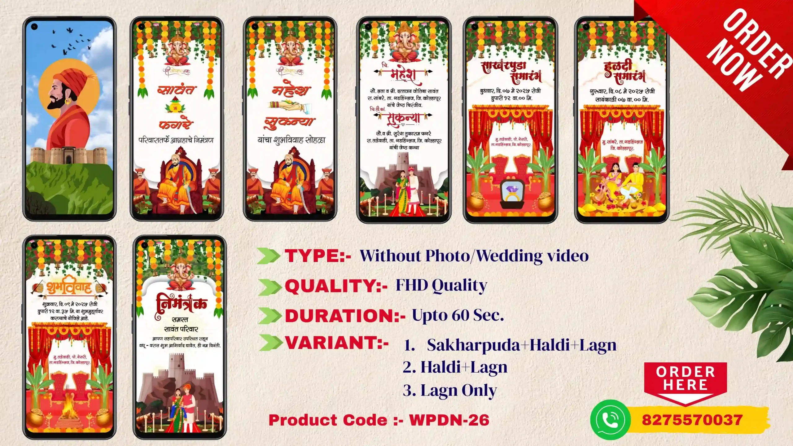 वर दिलेल्या Order Now बटणावर क्लिक करून तुम्ही थेट WhatsApp वरून आम्हाला तुमची ऑर्डर देऊ शकता.